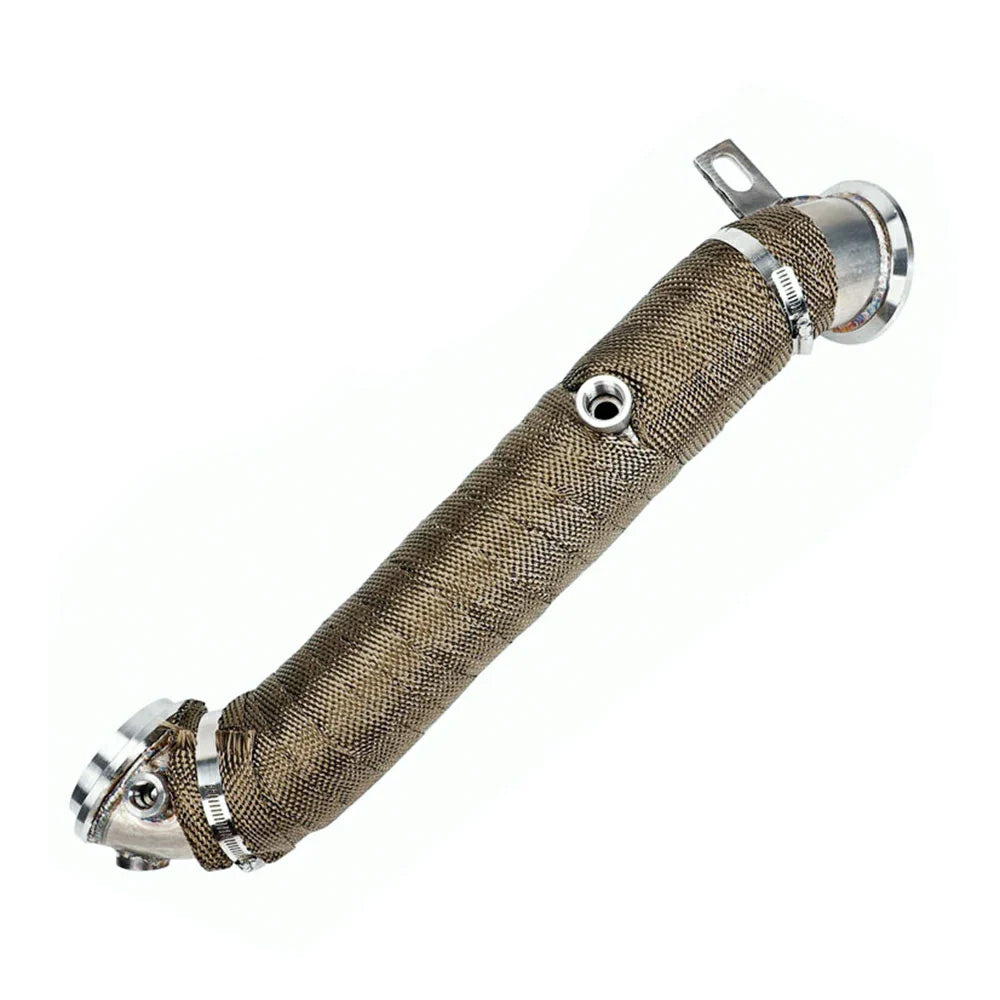The downpipe on your turbocharged vehicle is directing the exhaust gases out of the turbine housing into the exhaust system. An aftermarket downpipe will typically be larger in diameter and either uses a high-flowing catalytic converter or remove the catalytic converter altogether.