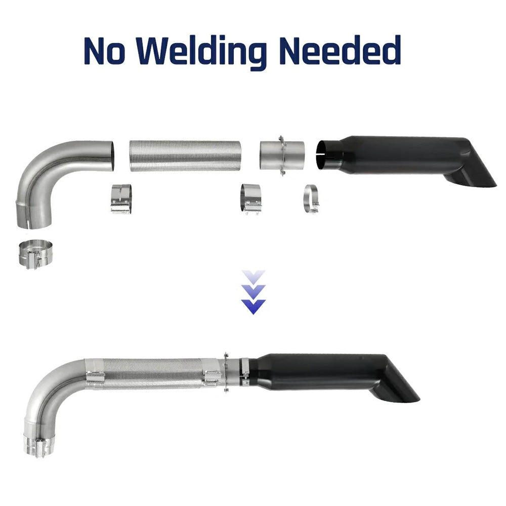 - Flexible & Durable: High-quality 201 stainless steel flex pipe allows for easy routing through the truck bed.