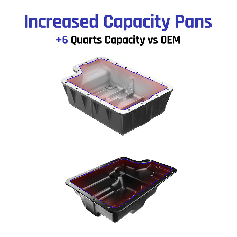 +6 Quart Capacity Increase: Holds 6 quarts more fluid than stock to improve thermal stability and reduce wear during heavy-duty use.