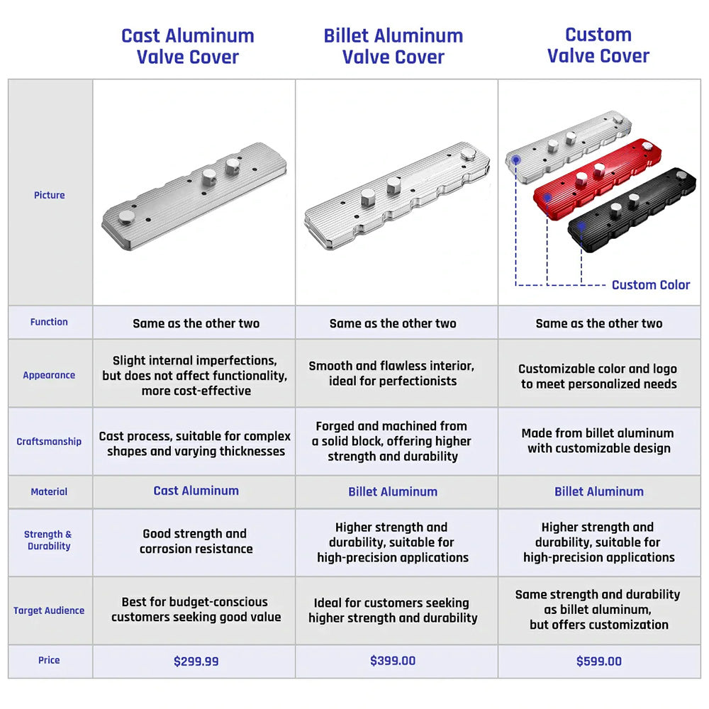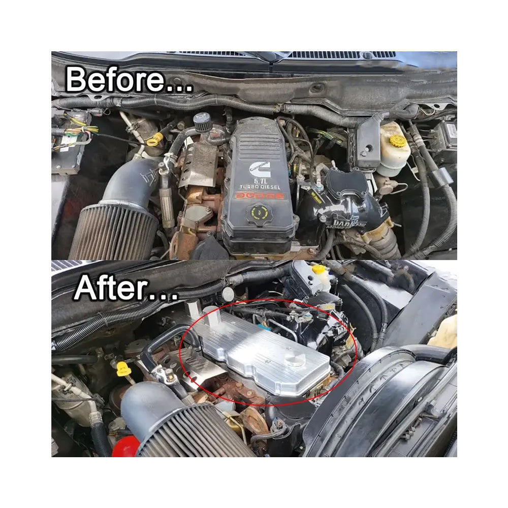 At, we understand the importance of performance and durability for your 5.9L/6.7L Dodge Ram engine. Upgrading to our cast aluminum valve covers offers significant advantages over OEM covers. Our high-strength aluminum covers provide exceptional heat resistance and durability, ensuring optimal performance under extreme conditions. With enhanced designs, cooling fins, and custom finishes, they add a sleek look to your engine bay. Whether for heavy-duty towing, racing, or simply enhancing engine durability and aesthetics, Cast aluminum valve covers deliver the strength and style you need. Choose for a superior upgrade that exceeds basic OEM performance.