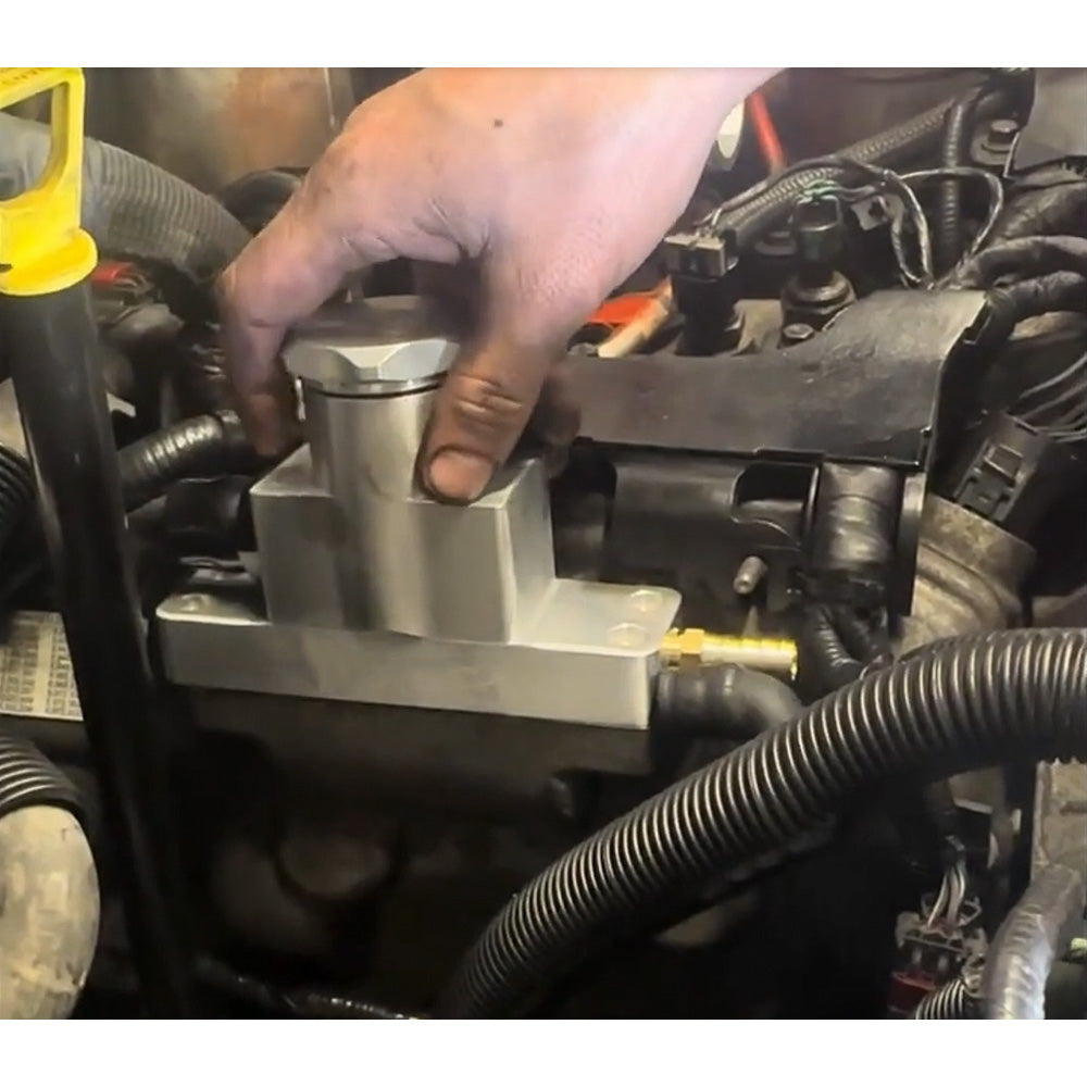 Designed specifically for the 2008-2010 6.4L Powerstroke diesel engines, the CCV/PCV ReRoute Delete Kit effectively addresses issues caused by the factory crankcase ventilation (CCV/PCV) system, such as intake carbon buildup, turbo contamination, and oil dilution. By rerouting or eliminating exhaust gas recirculation, it enhances engine efficiency, extends turbocharger lifespan, and keeps the engine bay cleaner. Made with high-quality materials for durability and featuring easy installation, this kit is a practical upgrade for improved performance and reduced maintenance.