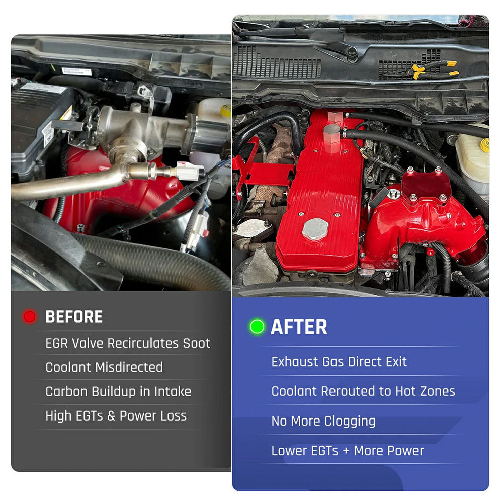 - Eliminates EGR Cooler & Related Components - Stop soot buildup in your intake
