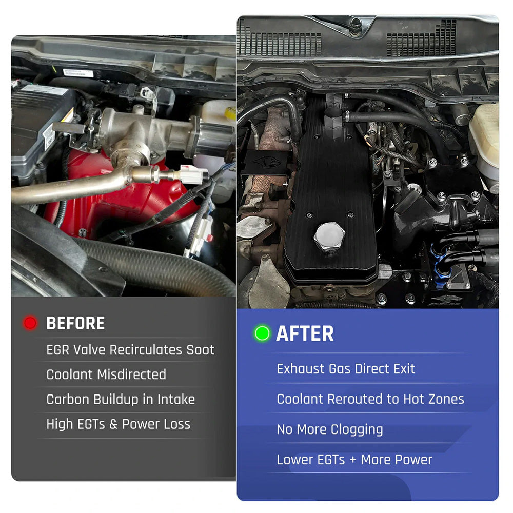 We don't cut corners when it comes to diesel performance. Our EGR Delete Kit completely eliminates the restrictive EGR system while optimizing your engine's cooling efficiency - because real power comes from smart engineering, not factory limitations.