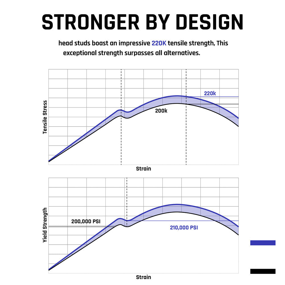 Perfect for high-boost, high-performance applications where factory head bolts may fail, ensuring consistent and even distribution of clamping force.