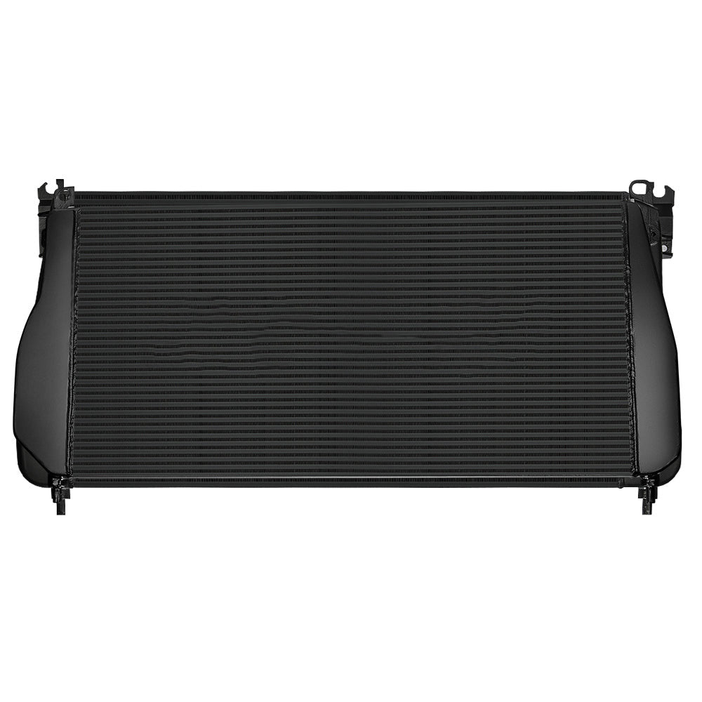 The Intercooler features a 3.35-inch bar-and-plate core, offering a significant upgrade over the factory's 2.48-inch core, resulting in a 34% increase in size. When comparing the bar-and-plate core to the traditional tube-fin design, there's a notable 32.5% increase in core volume. This enhanced design improves airflow and cooling efficiency, making it an ideal choice for boosting the performance and durability of your vehicle.