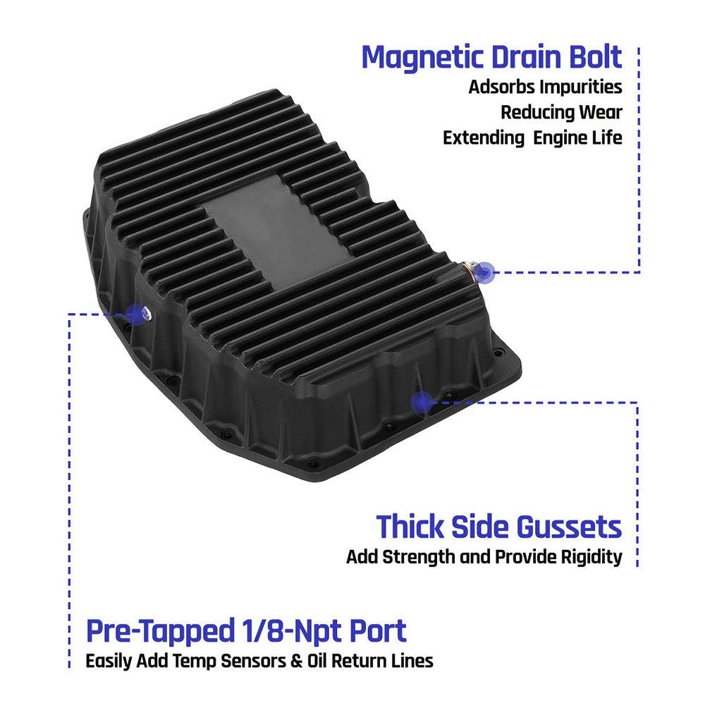 Superior Heat Dissipation: Made from cast aluminum with external cooling fins to efficiently lower oil temperatures—significantly outperforming OEM stamped steel pans.